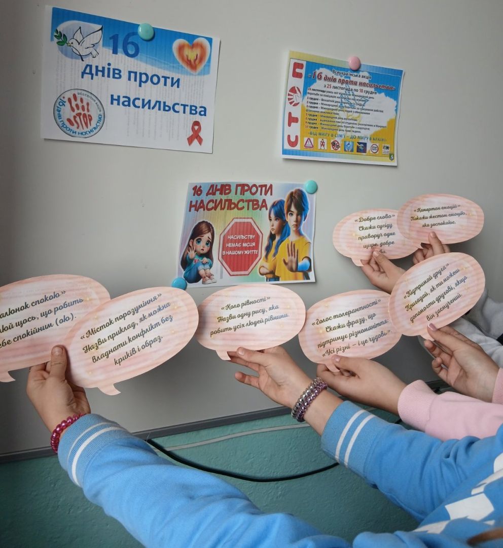 В рамках Всеукраїнської акції «16 днів проти насильства» в нашому закладі відбулася виховні заходи та зустріч з представниками Служби у справах дітей Гайсинської міської ради. Тема зустрічі: «Зупинимо насильство, зупинимо булінг!»