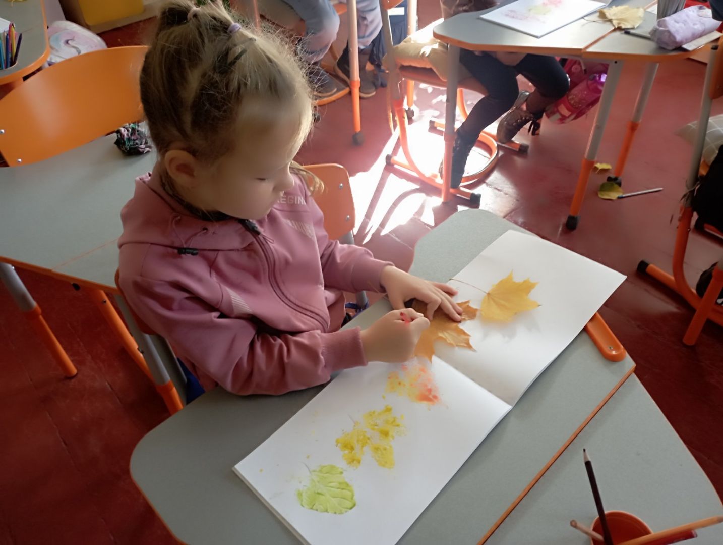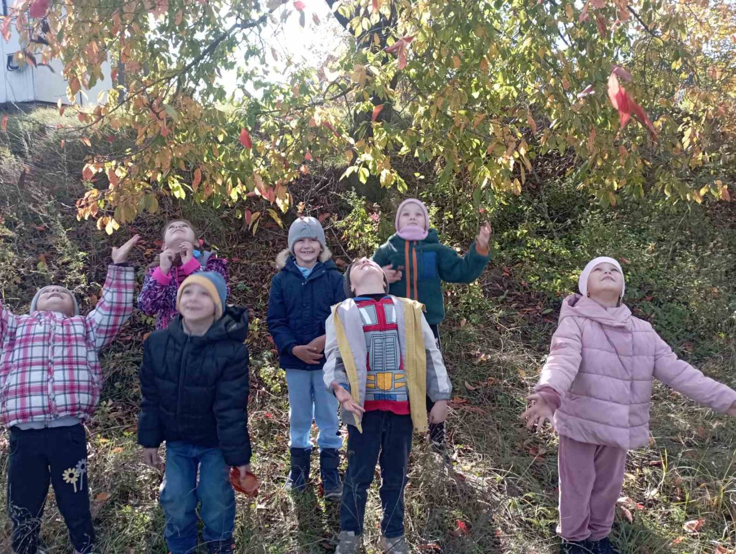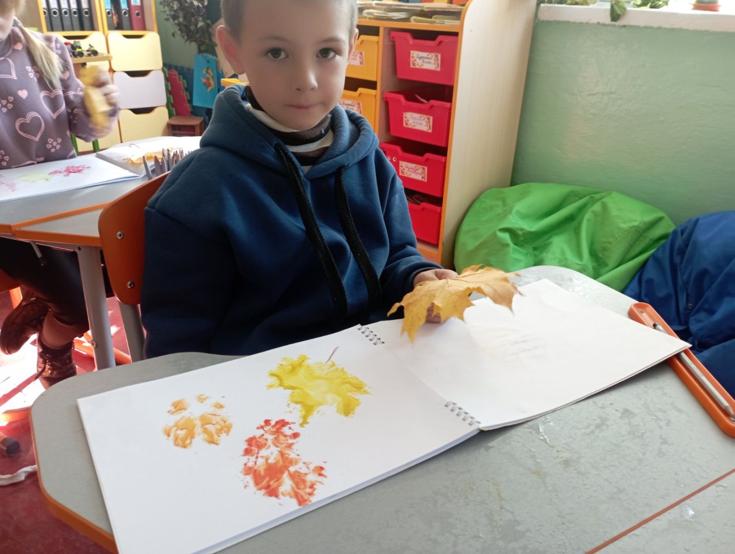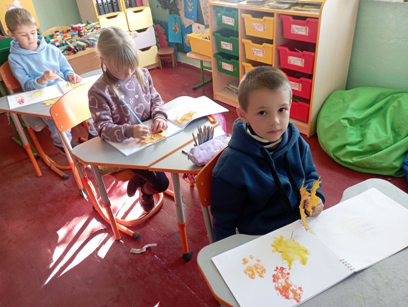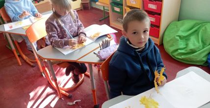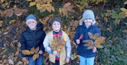 У першокласників тиждень " осіння мозаїка". Діти спостерігали, як осінь завітала у сади і парки. Були на екскурсії, збирали листочки. Малювали їх різними кольорами. Робили аплікацію осіннього дерева з рваного паперу. А ще вивчили і грали народну пісню "Ходить гарбуз по городу"